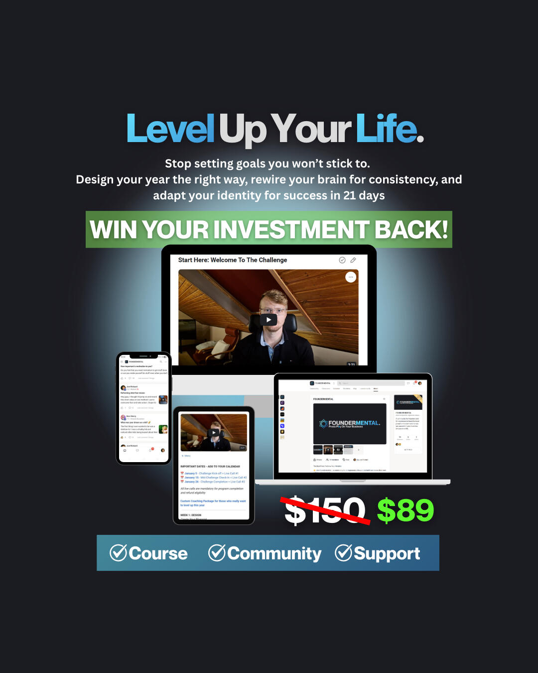 Most people fail their New Year's resolutions because they set the wrong goals, and never change the unconscious beliefs and identity that drive their behaviour. This 3 week challenge fixes that.